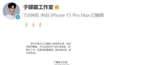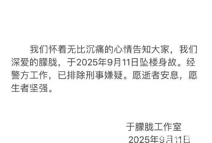 然而,就在近日,一則令人震驚的消息傳來,于朦朧不幸墜樓身故,工作室發文證實了這一噩耗,并表示已排除刑事嫌疑。