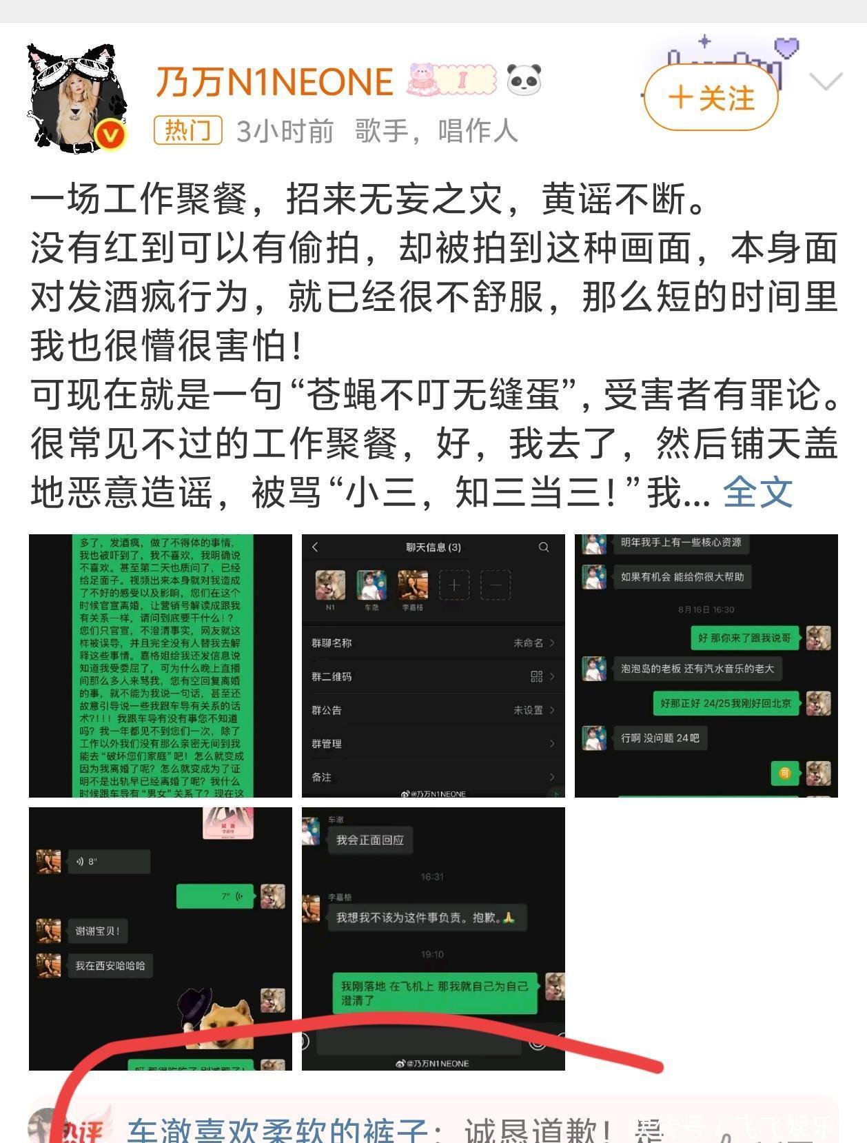 所以最后只有車澈去乃萬(wàn)的評(píng)論區(qū),為自己的酒后失態(tài)道歉。