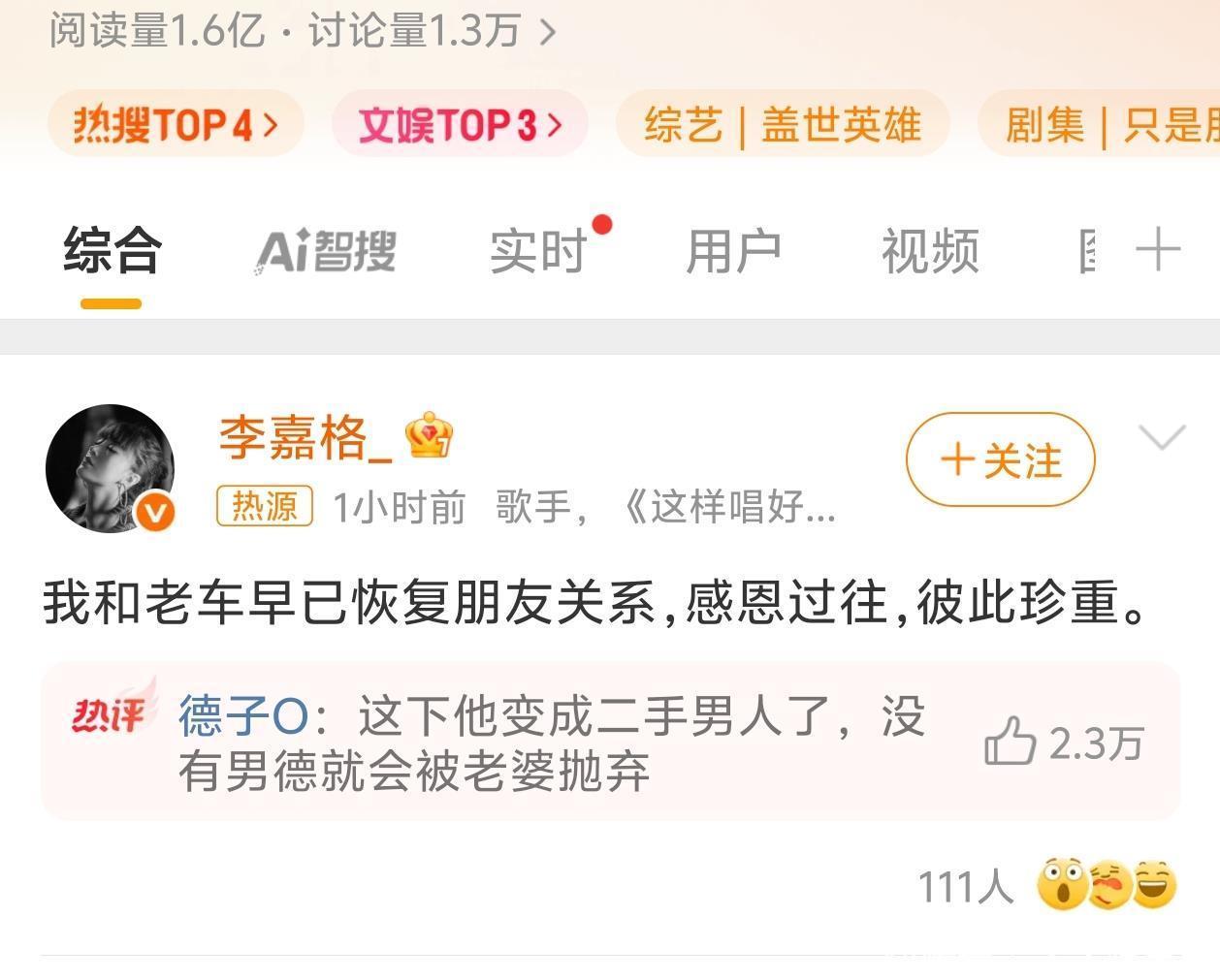 說(shuō)實(shí)話,人家李嘉格當(dāng)時(shí)就官宣了,說(shuō)和車澈早已成為朋友關(guān)系,這一句“早已”就已經(jīng)仁至義盡。至于乃萬(wàn)和車澈被拍到這種畫面到底是個(gè)什么樣的情況,人家李嘉格確實(shí)沒(méi)義務(wù)出來(lái)解釋些啥。所以乃萬(wàn)這操作網(wǎng)友基本是站李嘉格的