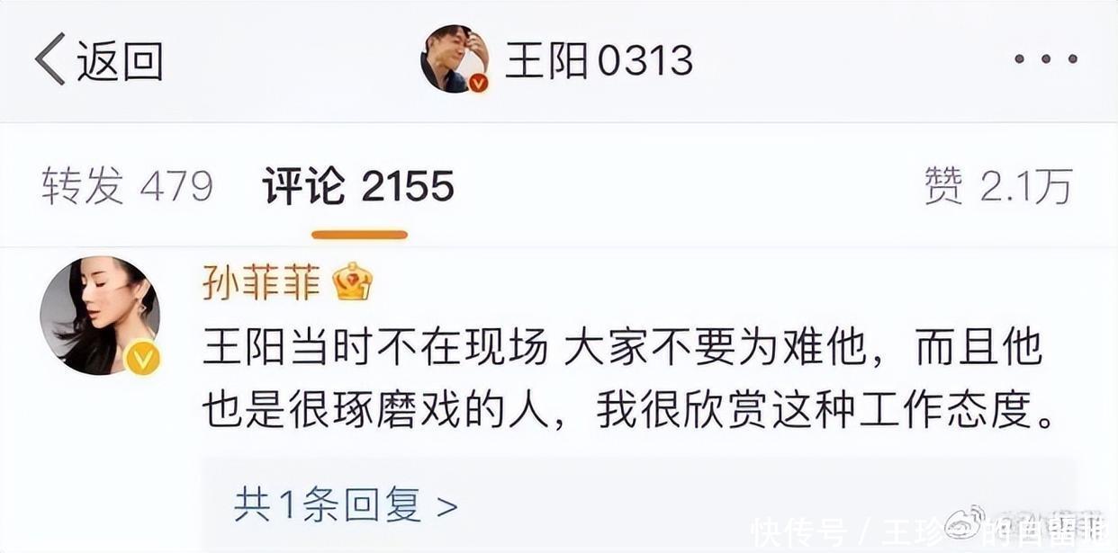在王陽發(fā)文之后,孫菲菲現(xiàn)身評論區(qū),她留言說王陽當(dāng)時不在現(xiàn)場,希望大家不要為難他。