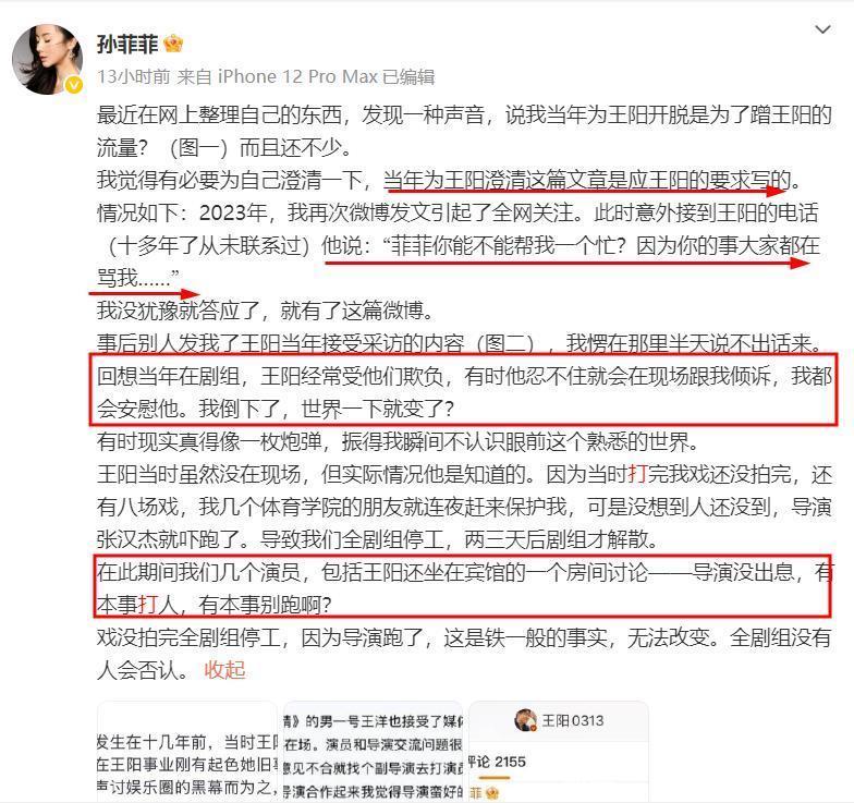 在孫菲菲看來,當(dāng)年王陽的言論是支持導(dǎo)演,砸她的飯碗。如今她又被他騙了幫他澄清。