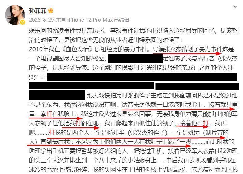 眾所周知,當(dāng)年孫菲菲在拍攝《血色戀情》時遭到劇組人員的毆打,孫菲菲認(rèn)為這是該劇導(dǎo)演張漢杰策劃的。