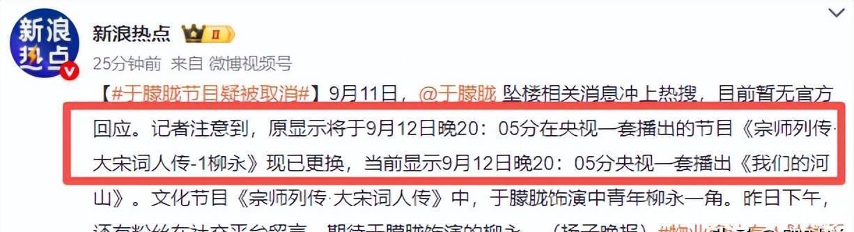 再加上9月12日,于朦朧再次受央視邀請參加直播節(jié)目,扮演其中的主人公角色。
