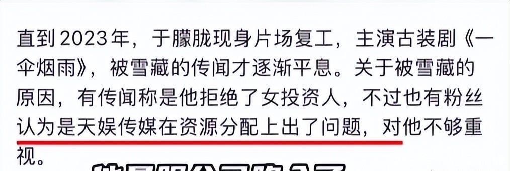 本以為他以后的會有越來越好的發(fā)展,可沒想到在事業(yè)上升期卻突然消失,三年沒有在大眾的視野出現(xiàn)過,錯過了最好的發(fā)展時期。有人說他是因為拒絕了女投資人,得罪了人導(dǎo)致被雪藏。也有粉絲認為是于朦朧公司在資源分配上有問題,對他不夠重視,才導(dǎo)致于朦朧多年沒戲可拍。