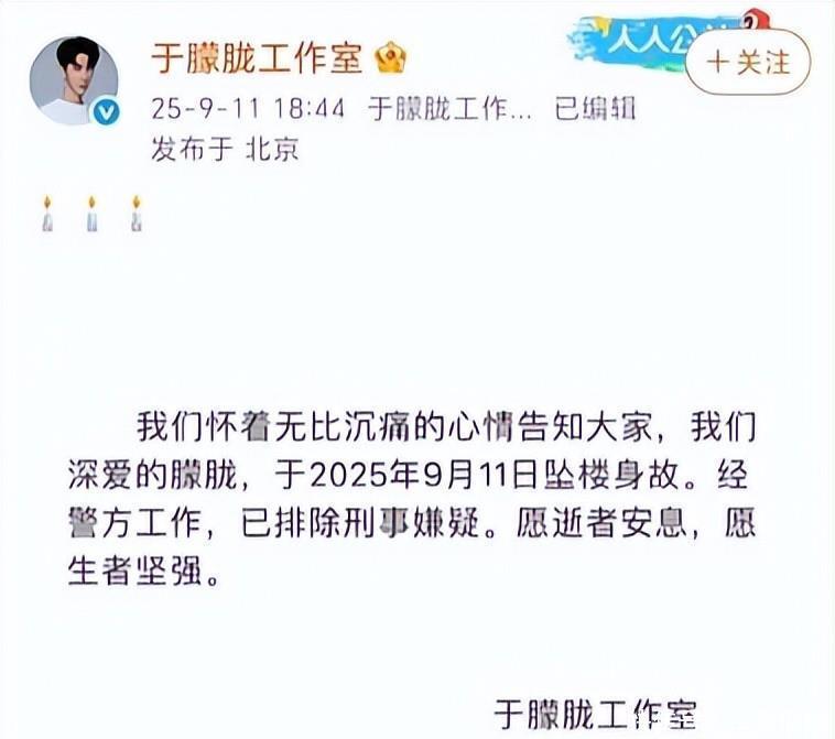 一開始所有人對這個消息還半信半疑,都在等官方辟謠的消息,畢竟于朦朧的經(jīng)紀(jì)公司至今沒有發(fā)聲。不曾想等到的卻是證實于朦朧死亡的通知,原來于朦朧真的墜樓身故,經(jīng)警方調(diào)查,排除了刑事案件。