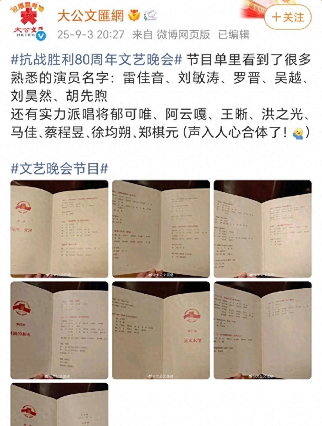 2025年9月3日晚,九三文藝晚會落下帷幕。演員吳越在次日凌晨連續發布兩條社交動態,分享演出后臺照片,配文再見我親愛的五角星,祝福和平與祖國。相關內容在網絡迅速傳播,評論區很快被各種聲音填滿。