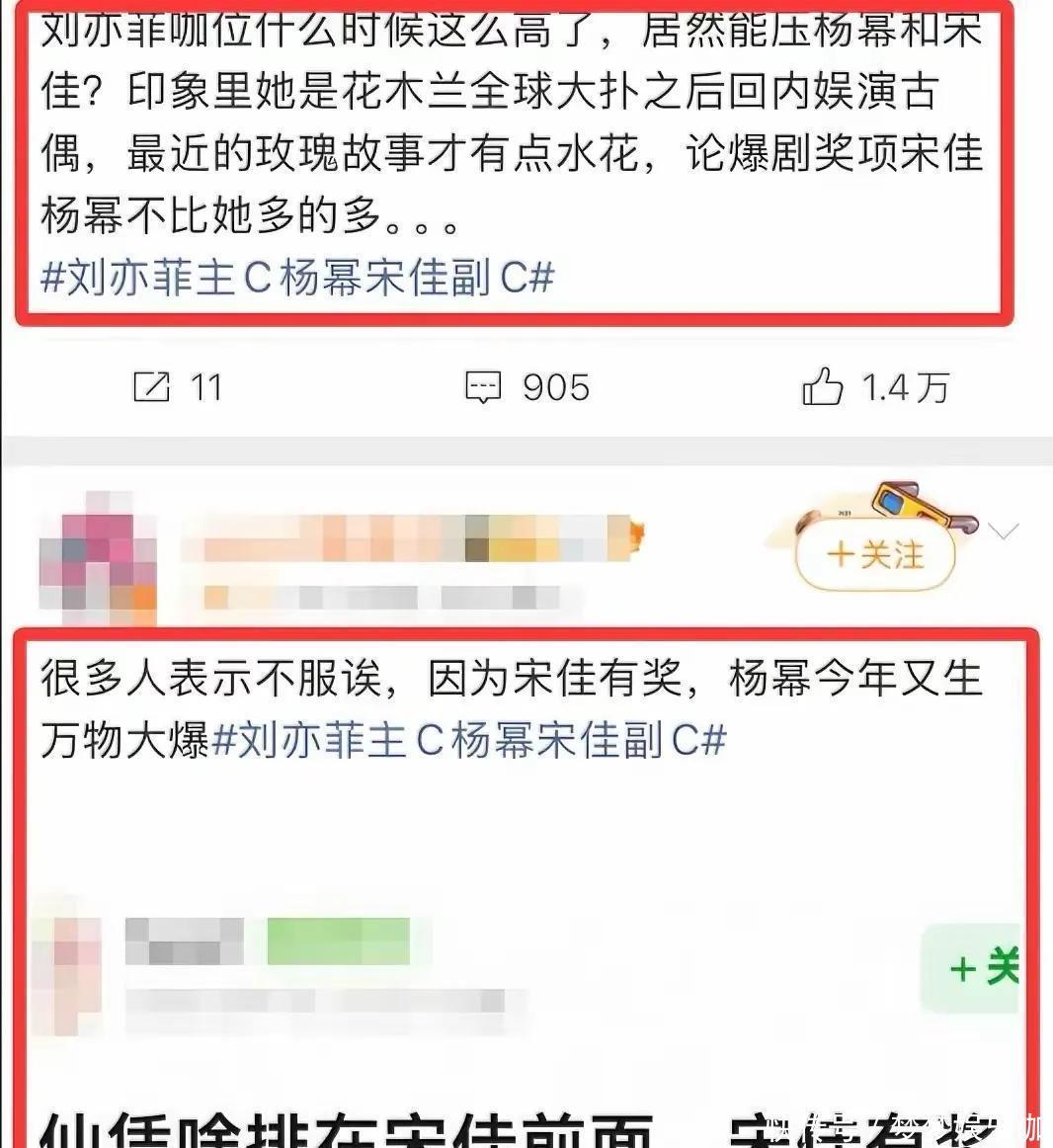 所以以至于拿過金鷹獎和二封白玉蘭最佳女主等眾多獎項以及優秀作品的宋佳,最近憑借《生萬物》成功轉型和獲得好評的楊冪,只能站在副C位來襯托劉亦菲。