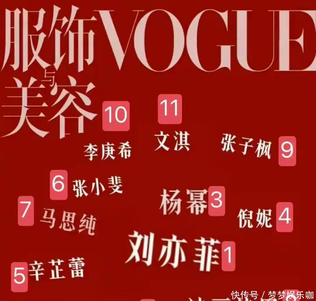除此之外,這次封面除了迪麗熱巴,倪妮,張子楓,辛芷蕾,宋佳,馬思純和張小斐等人,也還有不怎么聽過和了解的文淇和李庚希。