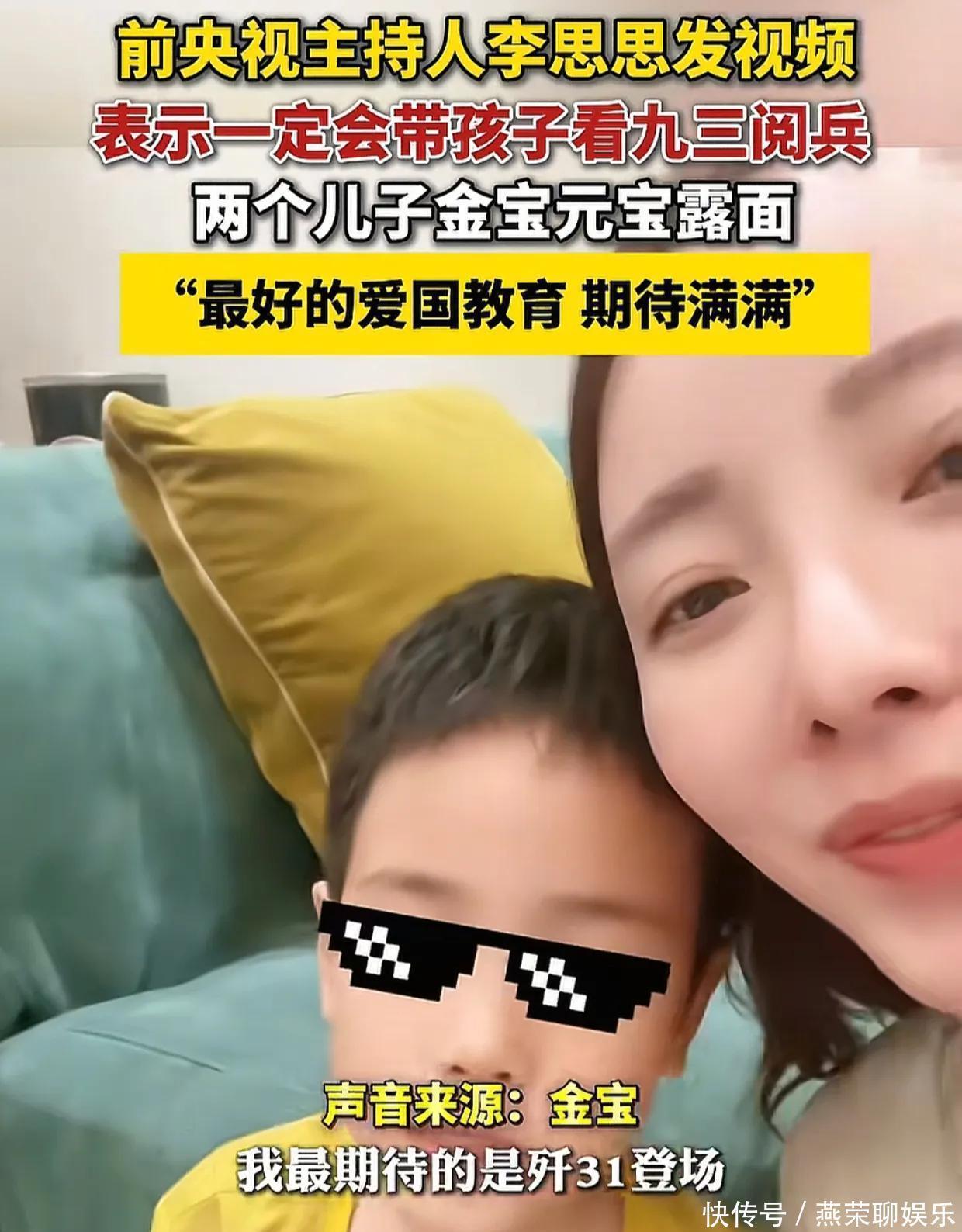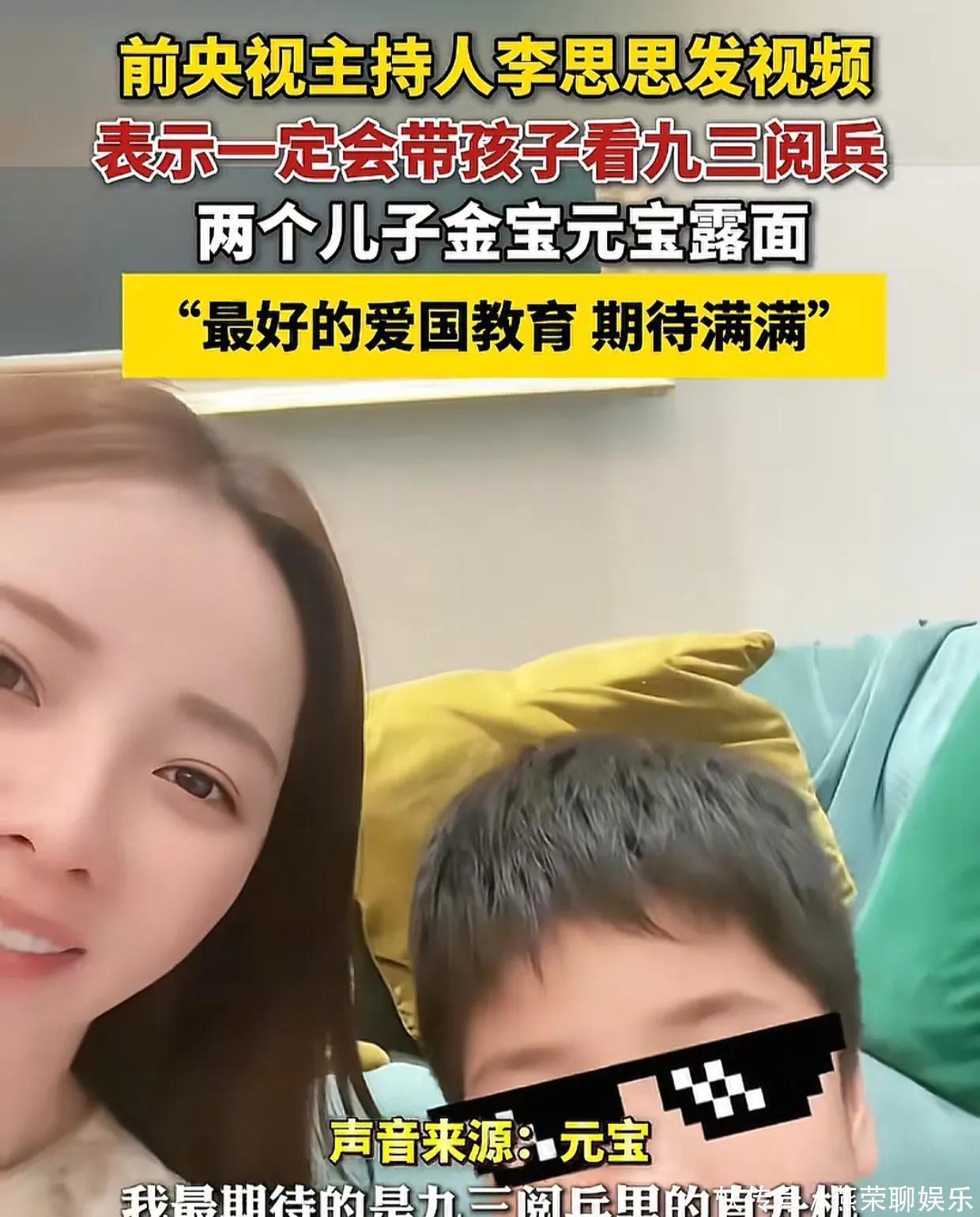 然而離開央視的她,卻收獲了家庭的圓滿。她的丈夫是大學同學,也是彼此的初戀。兩人育有兩子——“金寶”和“元寶”。今年閱兵前,兩個兒子也首次出鏡,李思思滿臉幸福地問他們“最期待看到什么”。