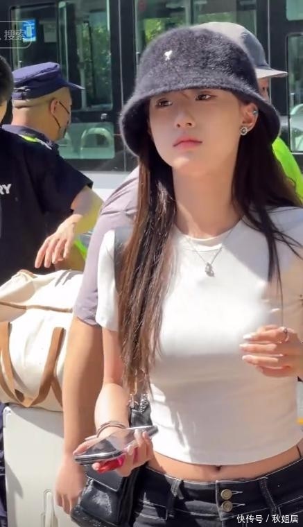 這位屬于甜美系女孩,但大熱天戴著一頂造型奇特的帽子,審美確實令人費解。