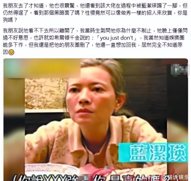 直到2013年,香港某雜志爆料了藍潔瑛的經歷,視頻中藍潔瑛親口爆料,自己曾遭受兩位香港大佬性侵,由于對方的地位太高,她不敢選擇報警。