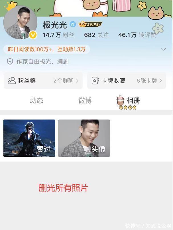 更惹人质疑的是,极光光把账号里的所有照片全部删除了,另一账号设成了私密账号。