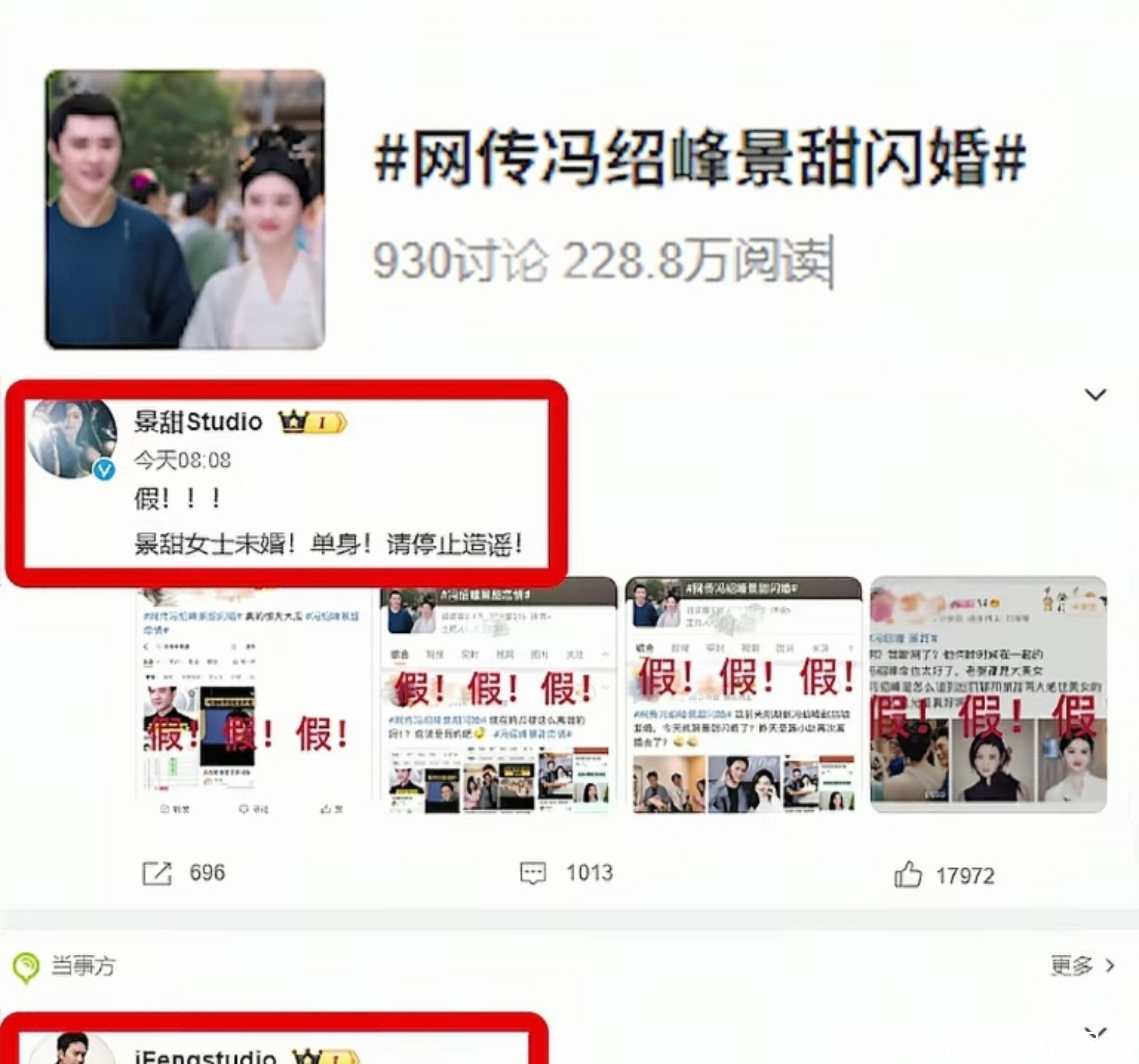 前脚传两人闪婚,说得分明,后脚双方光速辟谣,女方疯狂打假。