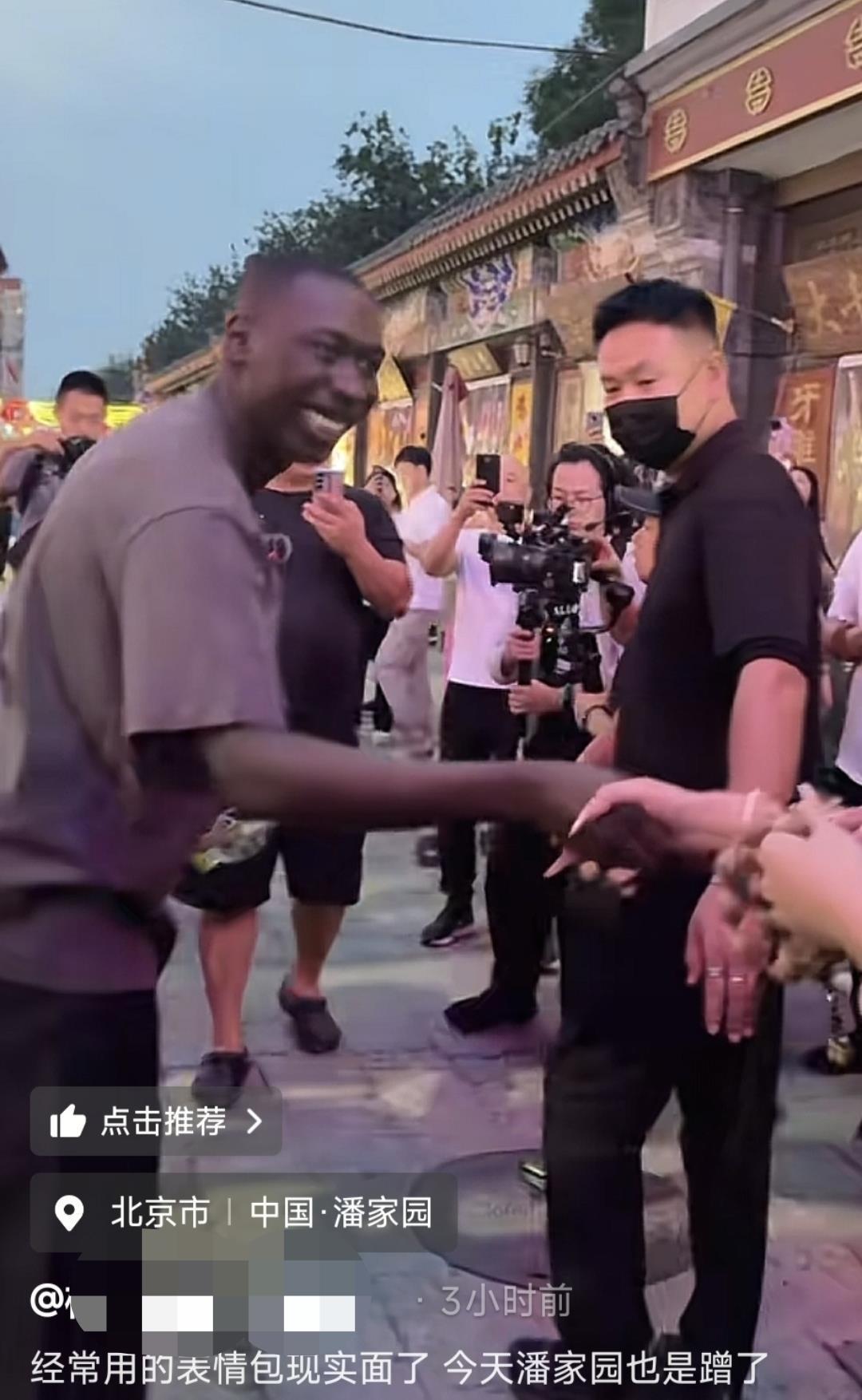 9日晚,一位在潘家园经营手串的老板郝先生告诉极目新闻记者,与无语哥同行逛潘家园市场的还有埃文·凯尔,他也有幸和二人握了手。无语哥一行人在潘家园市场溜达了一个多小时,一开始很多商户都不认识他,后来在网上一查发现原来是个大网红,围观的人也越来越多。