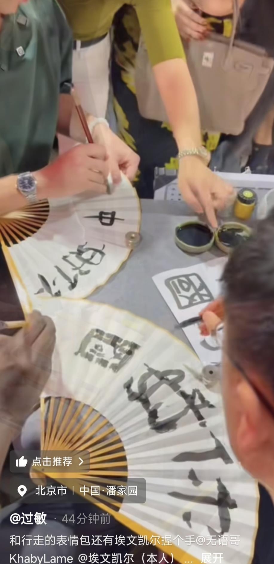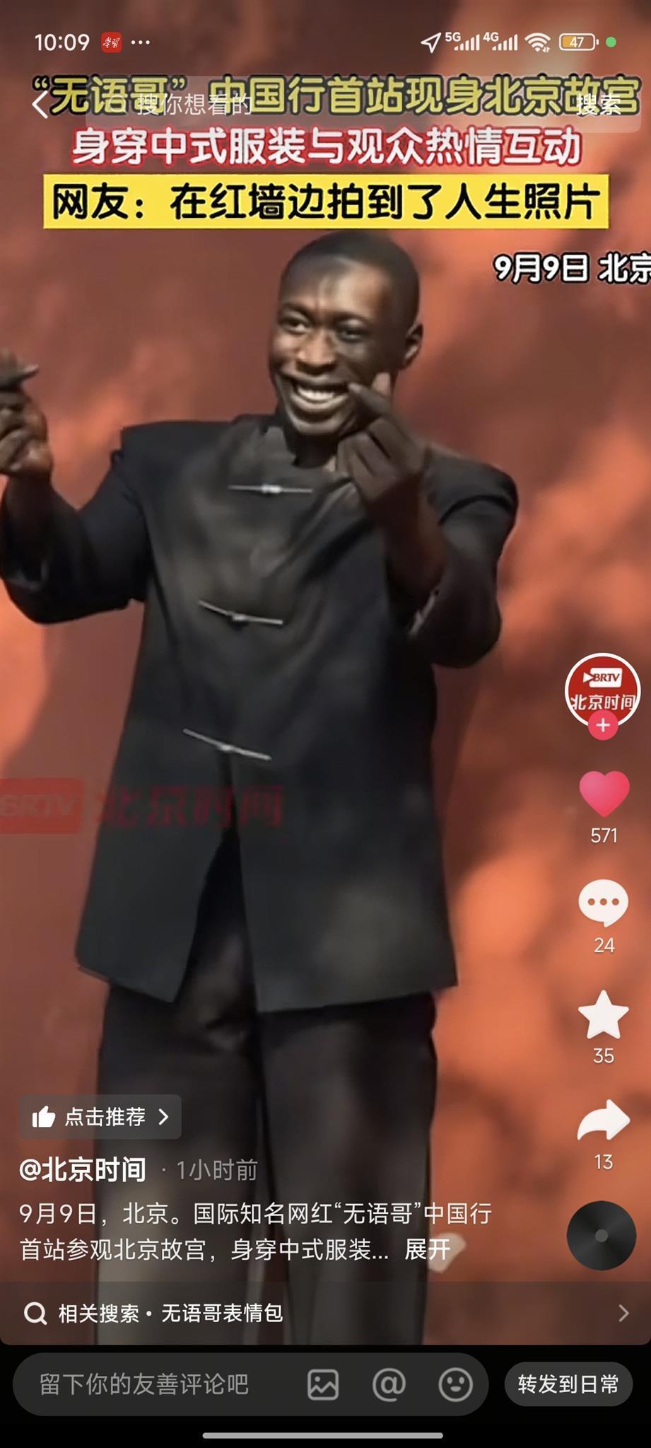 网红“无语哥”现身故宫并打卡潘家园,观众:他在扇子上写了“你好中国”