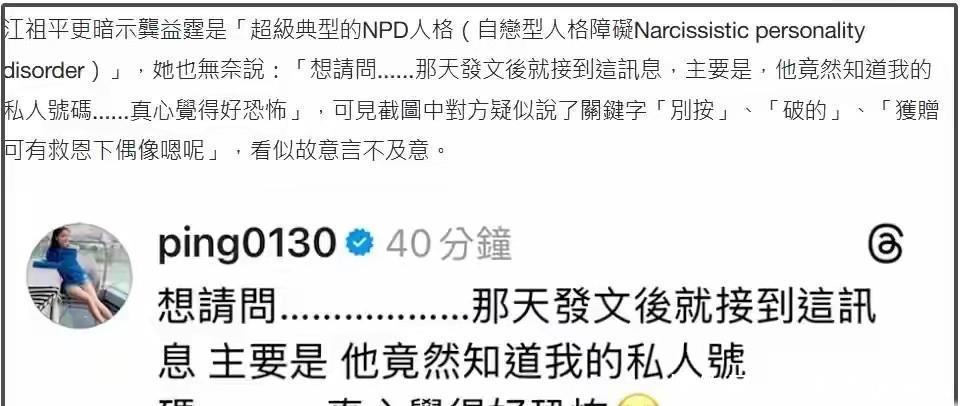 然而有意思的是,被点名的龚益霆很快就出来说话了。他的回应,直接把事件性质来了个大转弯。他说自己与江祖平是“交往关系”,声称两人直到今月底才分手。