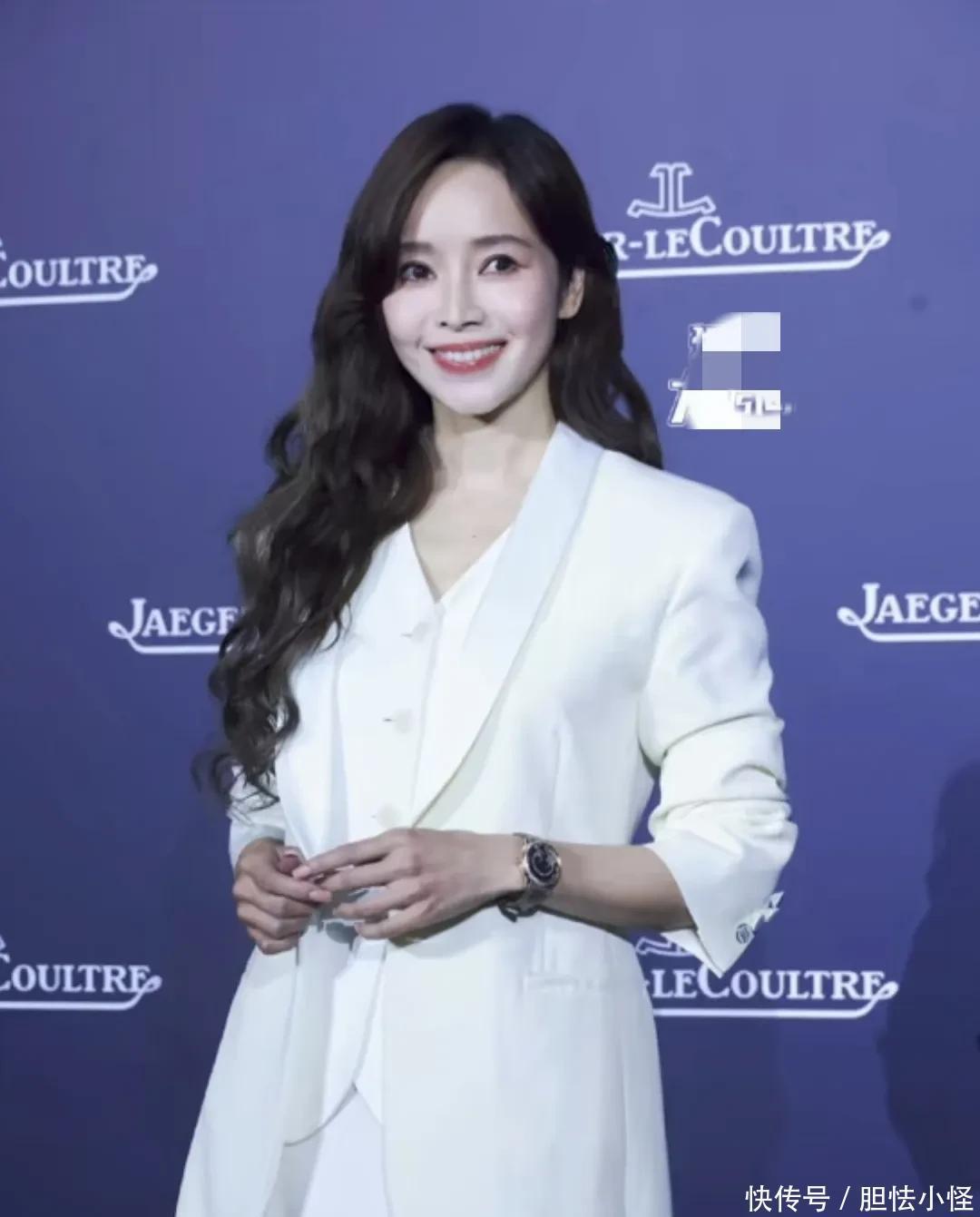 侯佩岑一袭长裙外搭白色西装,尽显知性优雅,笑容甜美迷人。