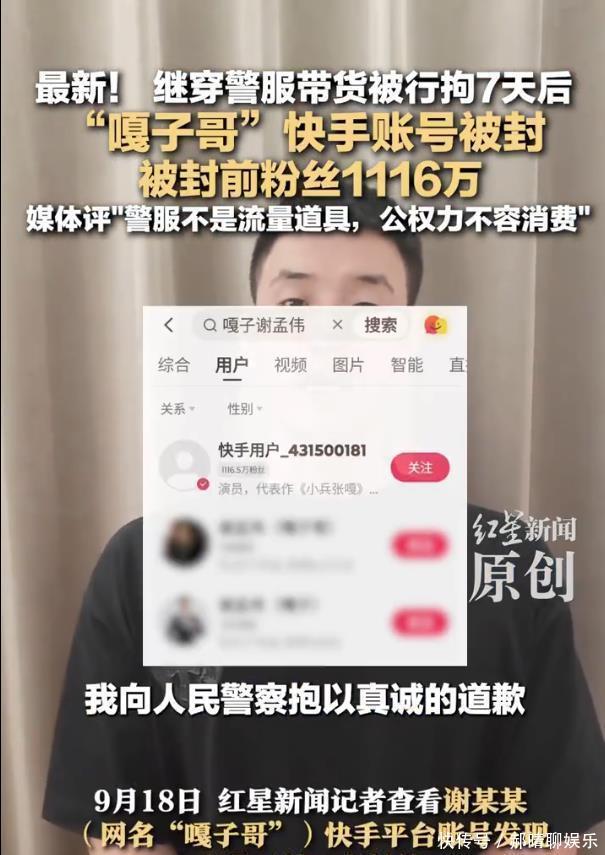 耿馬警方迅速出手,依據《人民警察法》第三十六條,認定其行為屬“非法使用警用標志、制式服裝”,造成不良社會影響,依法行拘7天。警方明確強調:警服為人民警察專用,網絡不是法外之地。而平臺的處罰更顯雷霆手段——9月18日,謝孟偉坐擁1116.5萬粉絲的快手賬號被徹底封禁。這不是暫時限流,而是直接封號,足見其行為觸及底線。其他平臺賬號雖未明確封禁,但也出現功能受限。對此,網友幾乎一邊倒表示:“罰得好!”從早年《小兵張嘎》積攢的觀眾緣,到后來“潘嘎之交”賣假酒翻車,再到直播間爆粗口、情緒炒作,謝孟偉一次次消耗公眾信任。而這次穿警服帶貨,更是踩中了法律紅線,被新華網直接點名批評:“警服是執法權威的象征,不是流量道具”“公權力不容消費”。