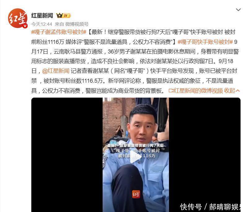 穿警服帶貨被行政拘留7天后,嘎子謝孟偉賬號被封