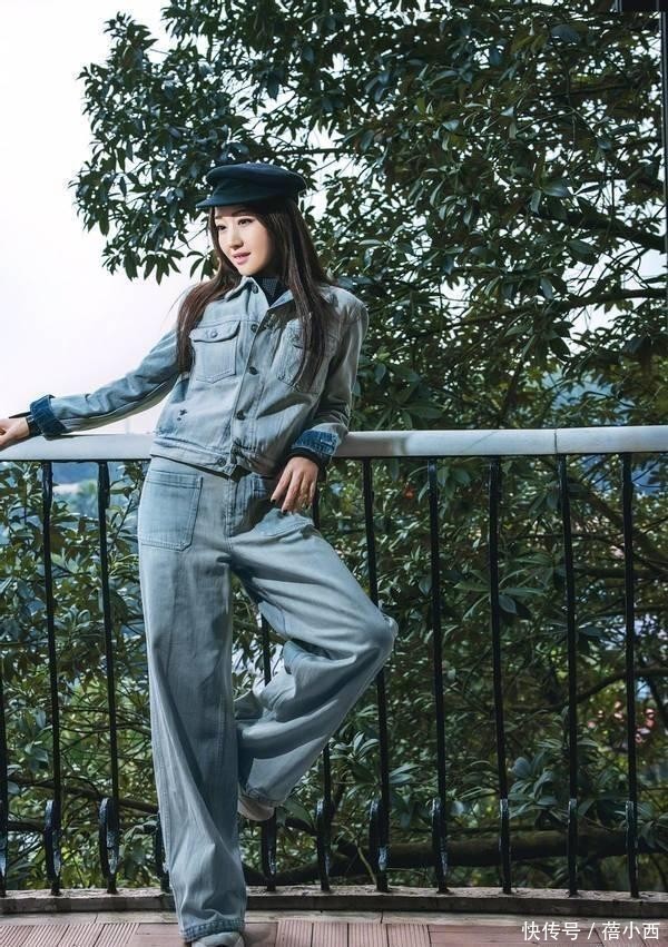 再看這身淺藍色牛仔套裝,又展現出了楊鈺瑩別樣的時尚風采。淺藍色牛仔自帶復古質感,外套結合工裝風設計,增添了硬朗與利落感,下裝搭配了闊腿牛仔褲,寬松的版型對腿型十分友好,走起路來帶風,盡顯灑脫隨性。