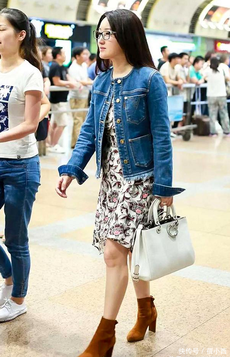內搭的碎花連衣裙,圖案清新雅致,花色與白色底色相互映襯,營造出了浪漫甜美的氛圍。裙擺的設計輕盈靈動,行走間仿佛帶著微風,凸顯了女性的柔美與溫婉。碎花元素本就充滿了少女感,與牛仔外套搭配,保留了裙裝的浪漫,又因外套的加持多了幾分率性,讓54歲的楊鈺瑩宛如青春少女般靈動。