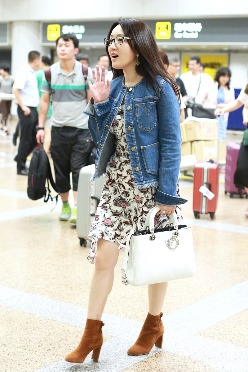 路人鏡頭下的楊鈺瑩,54歲無美顏、無濾鏡,披長發走機場像女學生