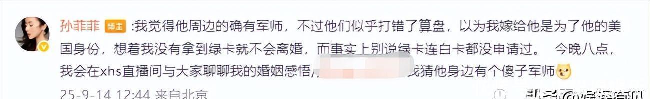 她的結婚對象名叫史宏,雖然年紀大了一點,卻是個精英男,頂著美籍華人、聯(lián)想集團總監(jiān)等光環(huán),活脫脫一個黃金單身漢。孫菲菲會就此淪陷,也在情理之中,畢竟哪個女人不想找一個穩(wěn)定的靠山?更何況是在娛樂圈里這種“吃了上頓沒下頓”的。