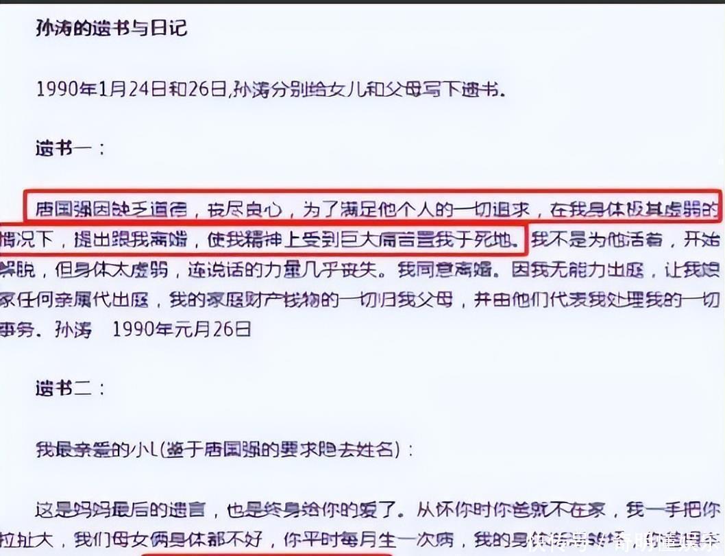 但是唐國強這一家子卻面臨了一個讓人震驚的事情,孫濤竟然在家中自殺,并且留下了兩封遺書。第一封寫滿了自己對唐國強的不滿和“喪盡良心”的話語!