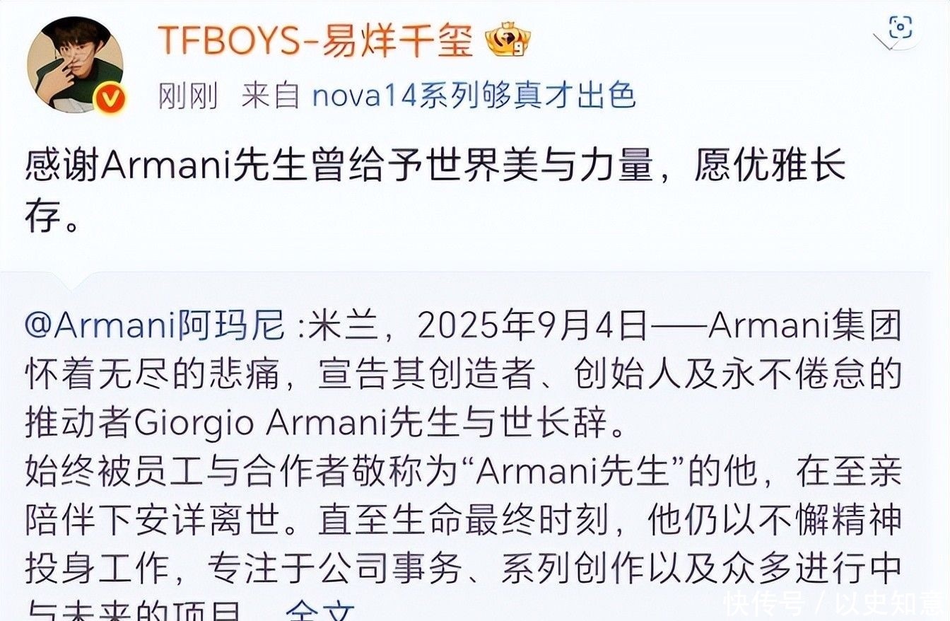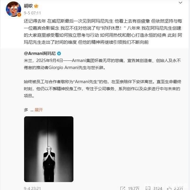 其中最引人注目的當屬胡歌。作為阿瑪尼品牌的全球代言人,他發表了一段深情的文字,字里行間充滿真情,結尾更是寫道“你的精神一直引領我們前行”,沒想到這段話卻引發不小爭議。