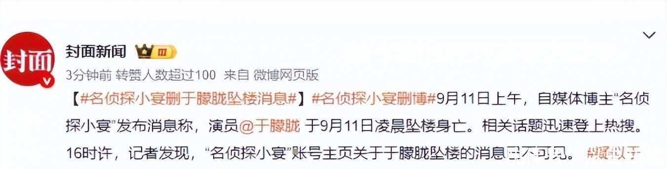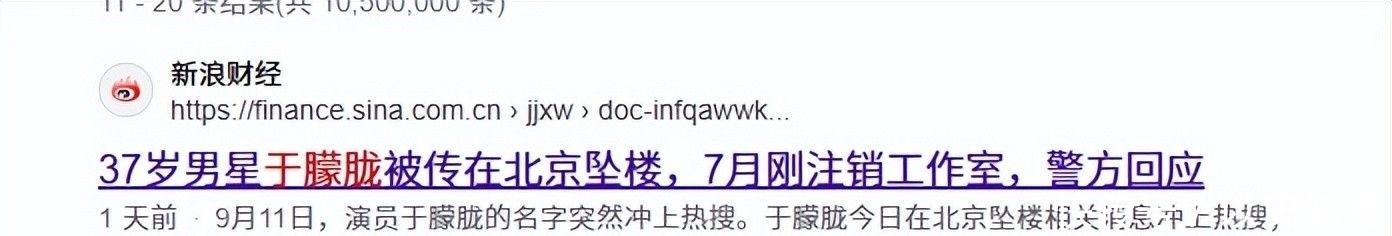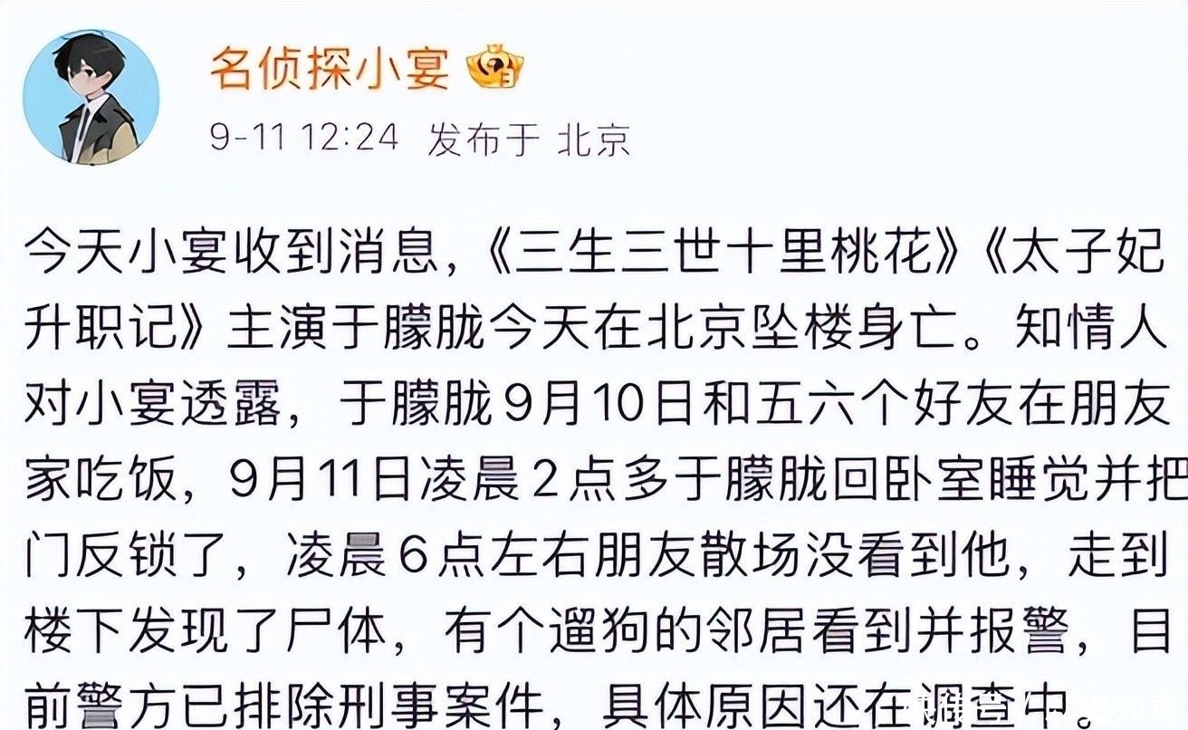1. 新浪財經:37歲男星于朦朧被傳在北京墜樓,7月剛注銷工作室,警方回應