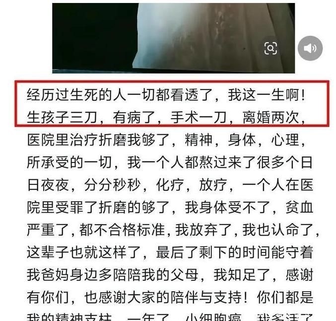 但她確診后,丈夫并未給予支持,反而選擇離婚,讓她回娘家休養。