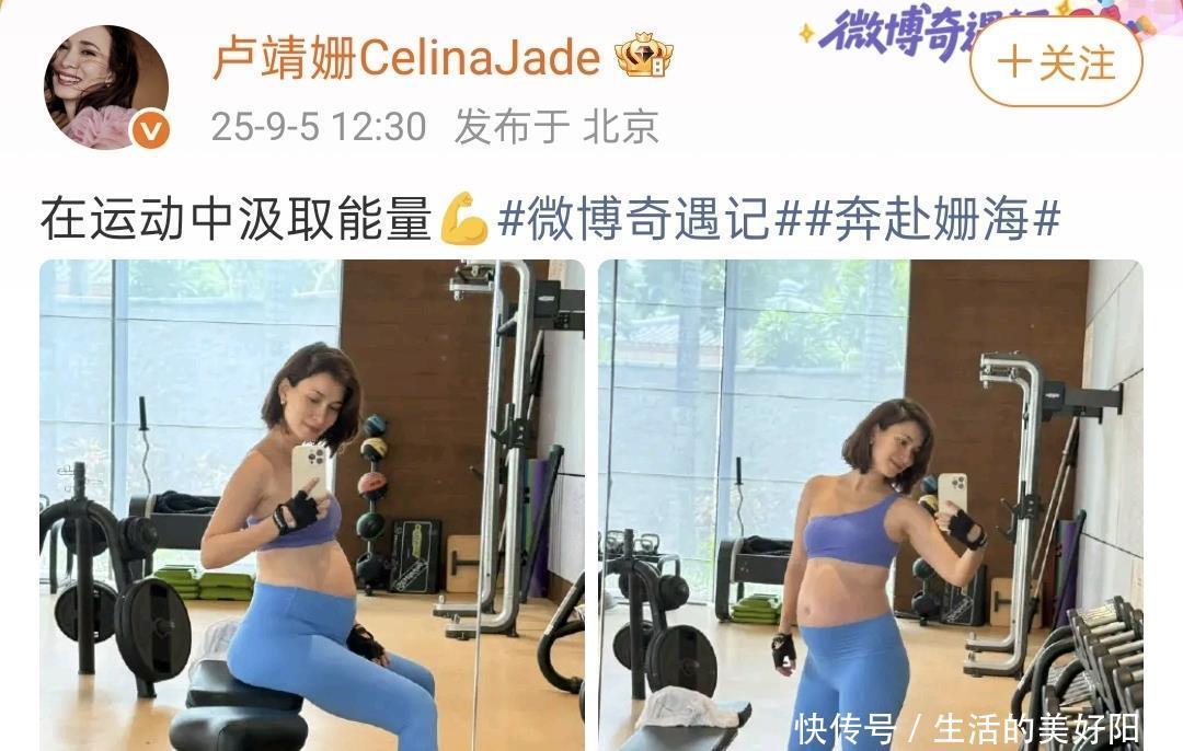 孕期自律的卢靖姗超美的!在运动中汲取能量,整个人闪闪发光,是一位超有能量,超幸福的妈妈。与韩庚升级一家四口,幸福到老~