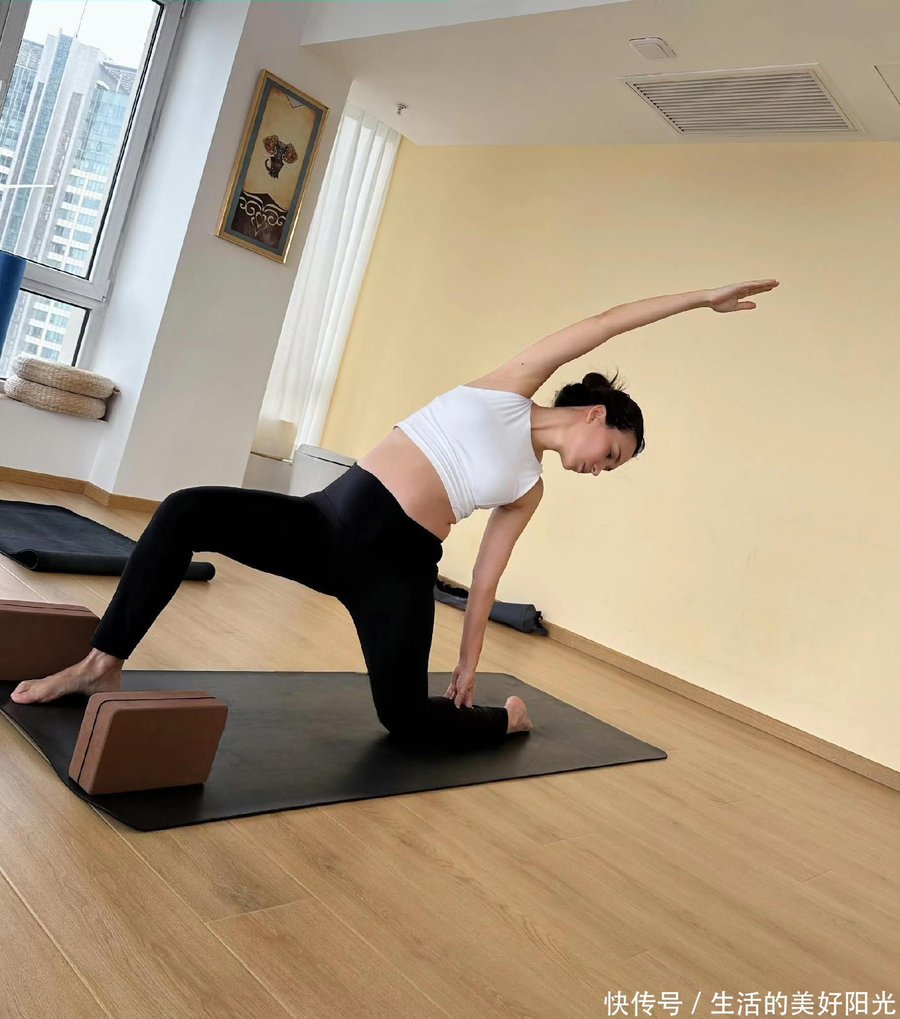 40岁卢靖姗在家健身,挺九个月孕肚不浮肿!比孕七月时状态还要美