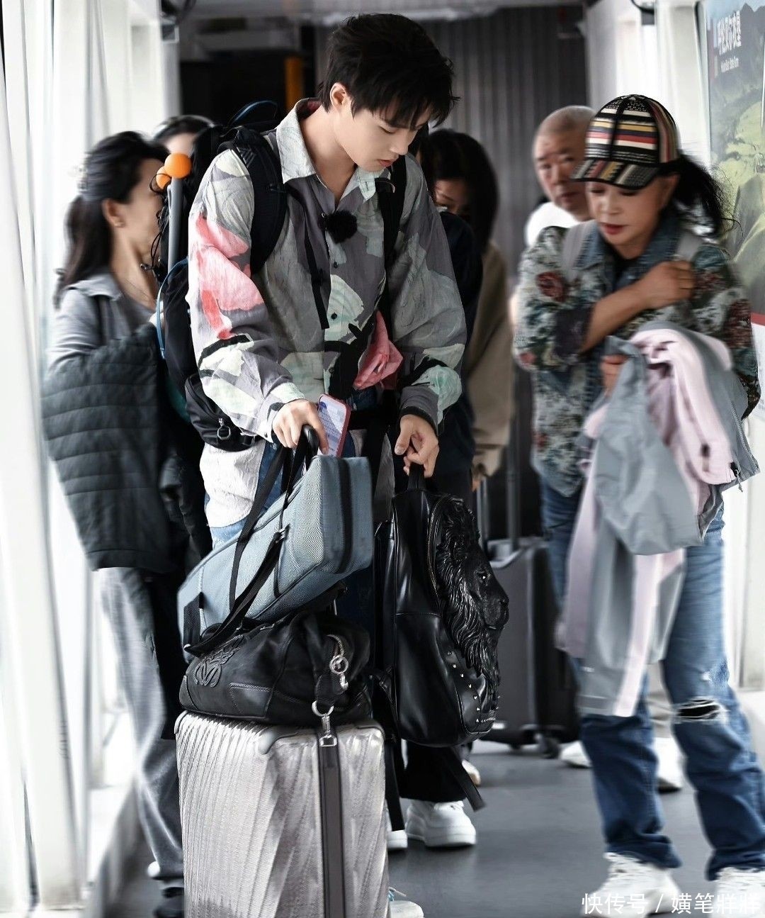 62岁的何赛飞拖着行李车前行,略显吃力。她的装扮同样休闲,身着灰色运动服,长发自然垂落,即使穿着运动装,仍散发出温婉气质,面容清秀耐看。