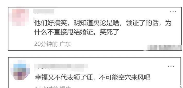 况且男生只是用语言或行动表达很幸福并没有表示已经领证了,只是重复表达很幸福的行为令人不解。而关于杨女士收到的质疑和恶意男方完全可以直接澄清,表示自己家人完全认可为什么要这么偷偷摸摸的。