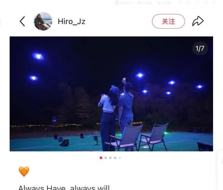 除了无人机表演这个账号还晒出了烟花秀,阵仗不小旁边就是无人机的起飞地周围的环境是在郊区应该是在露营。这边在秀恩爱另一边杨女士的粉丝看见以后纷纷跑到这个账号下面支持姐夫,祝福两个人感情长久。