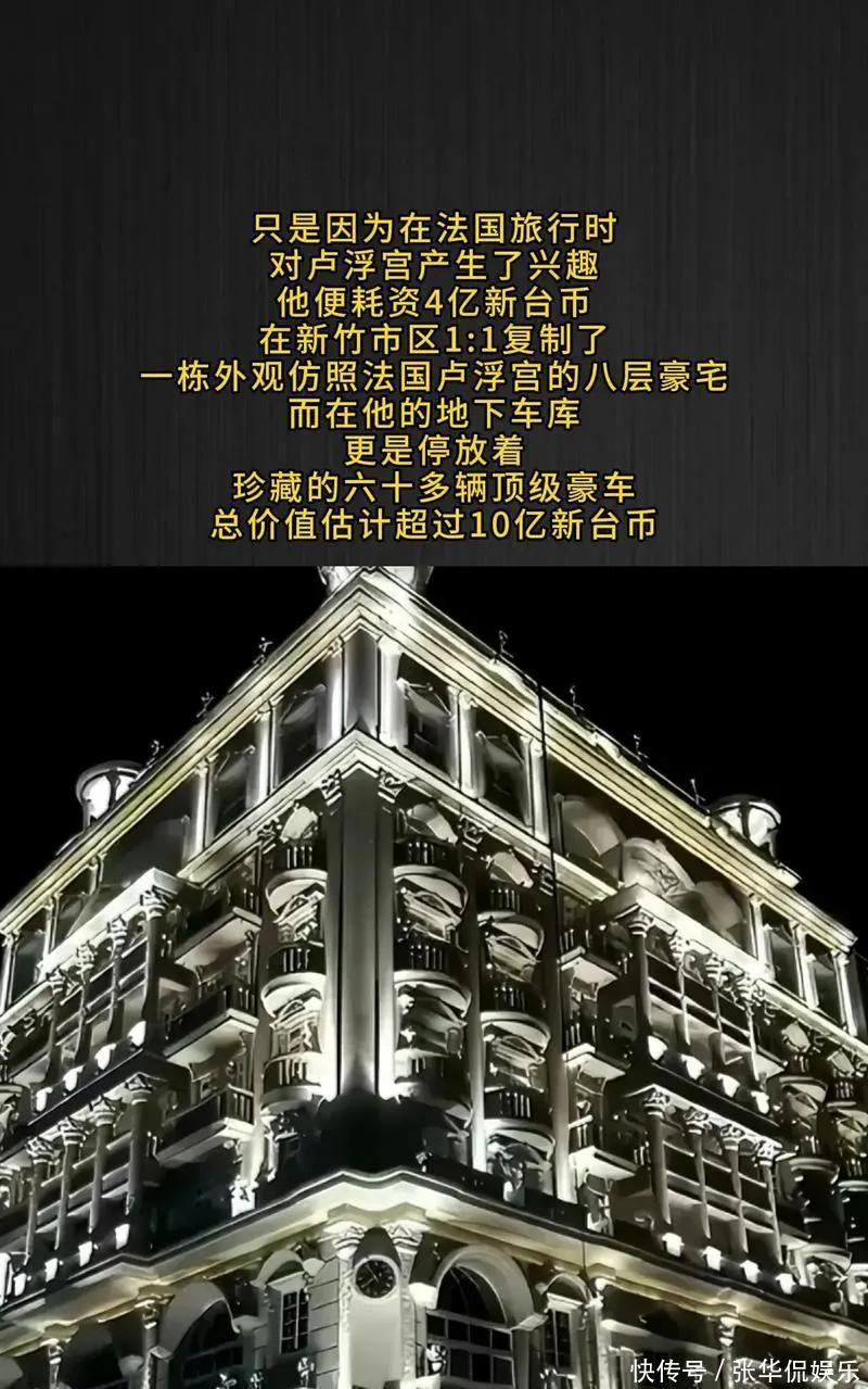 【富二代逆袭记】 别以为他只是个啃老本的富二代!2016年接手父亲的启德机械后,他硬是把公司做到亚洲前三,个人身价飙亿台币(约亿人民币)。但最绝的是他花钱的方式——别人炫富顶多买豪车,他直接造了栋"台湾卢浮宫"!【5亿豪宅大揭秘】 这层楼高的金色宫殿,光地基就打了半年。里面汉白玉铺墙、黄金马桶盖都是基本操作,最夸张的是那个镶满宝石的镀金餐桌,坐上去吃饭都怕闪瞎眼。四房太太每人独占一层,自带观景阳台和衣帽间,这待遇堪比皇后寝宫!