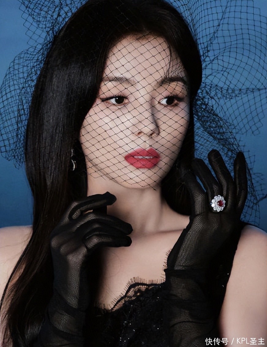喻言则凭借一身黑色露肩丝绒礼服长裙搭配冰川蓝花瓣装饰,诠释了“冷艳”的定义。