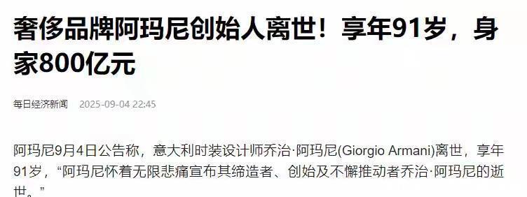 本来网友们对于胡歌转发这样的事情也是非常支持的,纷纷在他的这条内容下面点赞。没想到第二天,也就日,意大利奢侈品牌阿玛尼发布了一条公告,品牌创始人阿玛尼去世,在娱乐圈引起了轰动。