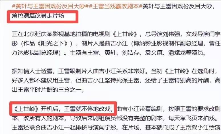 不过,王雷口碑之所以一度受损,还得从拍戏“改戏风波”说起。在《上甘岭》的拍摄过程中,王雷与黄轩的一场对手戏原本令人期待,却爆出王雷“加戏、改戏”未提前沟通,对方甚至传出要罢演。其实,演员根据自己理解调整剧本并非罕见,但为了整体节奏与协同行进,及时沟通必不可少。王雷那次争议就因没即刻通知剧组伙伴,导致信息不一致,产生误伤。之后相关人员出来解释,也算化解了风波,但“戏霸”的名号也不胫而走。