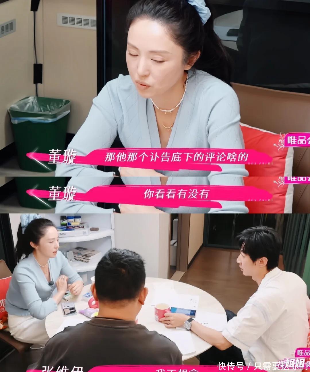 再看买金首饰送礼给张维伊亲戚,当大家觉得董璇大方时,隔天爆出董璇代言了那个金饰品牌,董璇这一出是在做宣传。这次董璇面对张维伊突然的大吼,反应有点出乎大家意料了,果然不是恋爱脑。