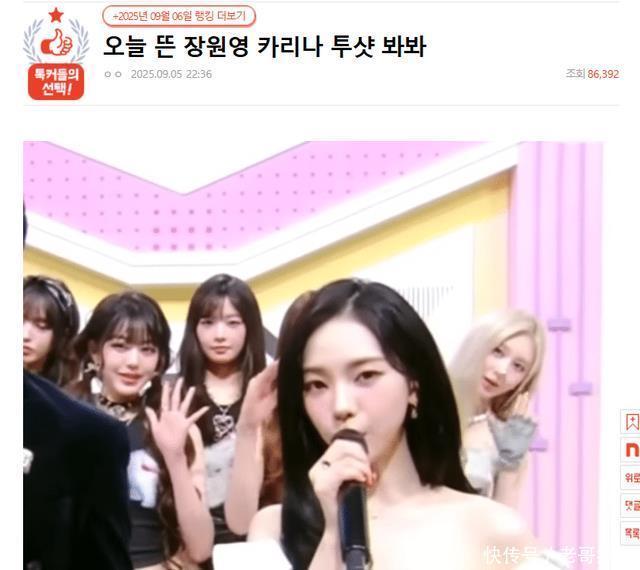 ?????? 近日,有网友发布了IVE成员张元英与aespa成员柳智敏在音乐节目上相遇的画面,引发了讨论。