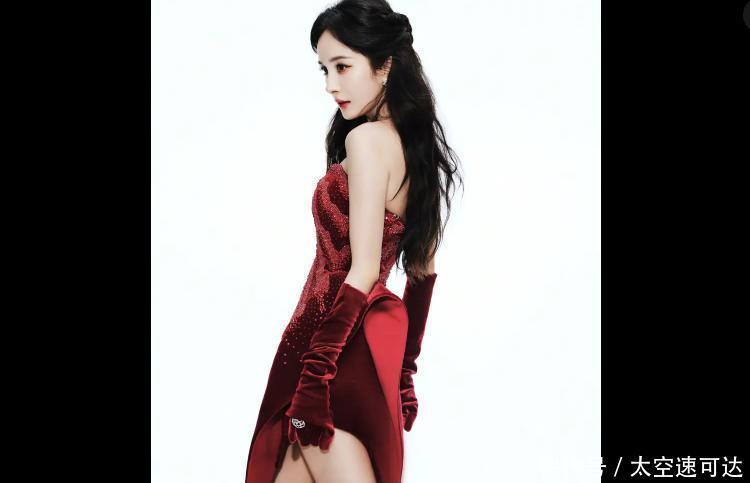 楊冪紅絲絨閃鉆抹胸裙,優雅又大氣,高冷范十足!